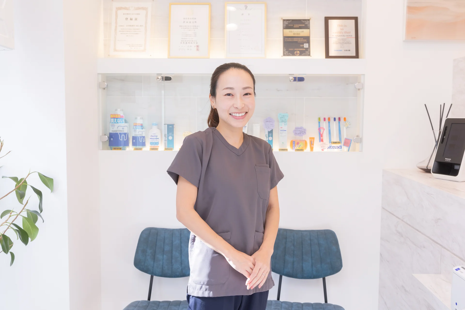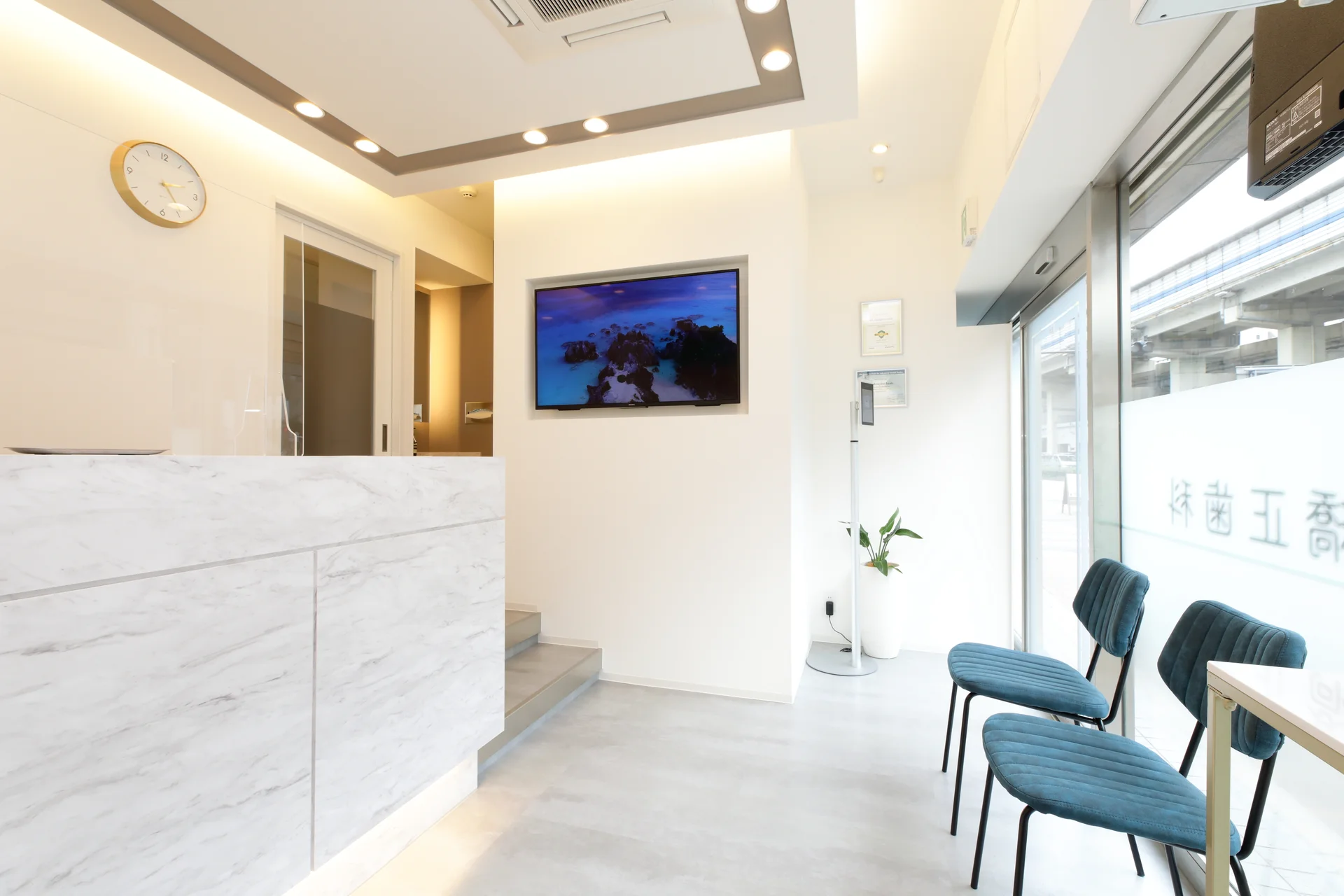 待ち時間の不安を和らげる、明るく開放的なロビー。なるべくお待たせしない予約体制を整え、お仕事や家事でお忙しい方の貴重な時間を大切にします。