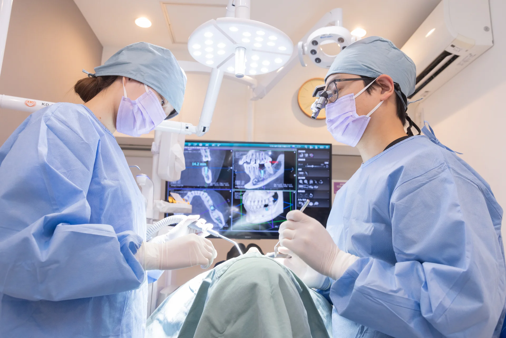 リラックスして過ごせる完全個室を完備。CT診断や口腔内スキャナー等の高度な設備により、精度の高い診査・診断と精密な治療を行います。