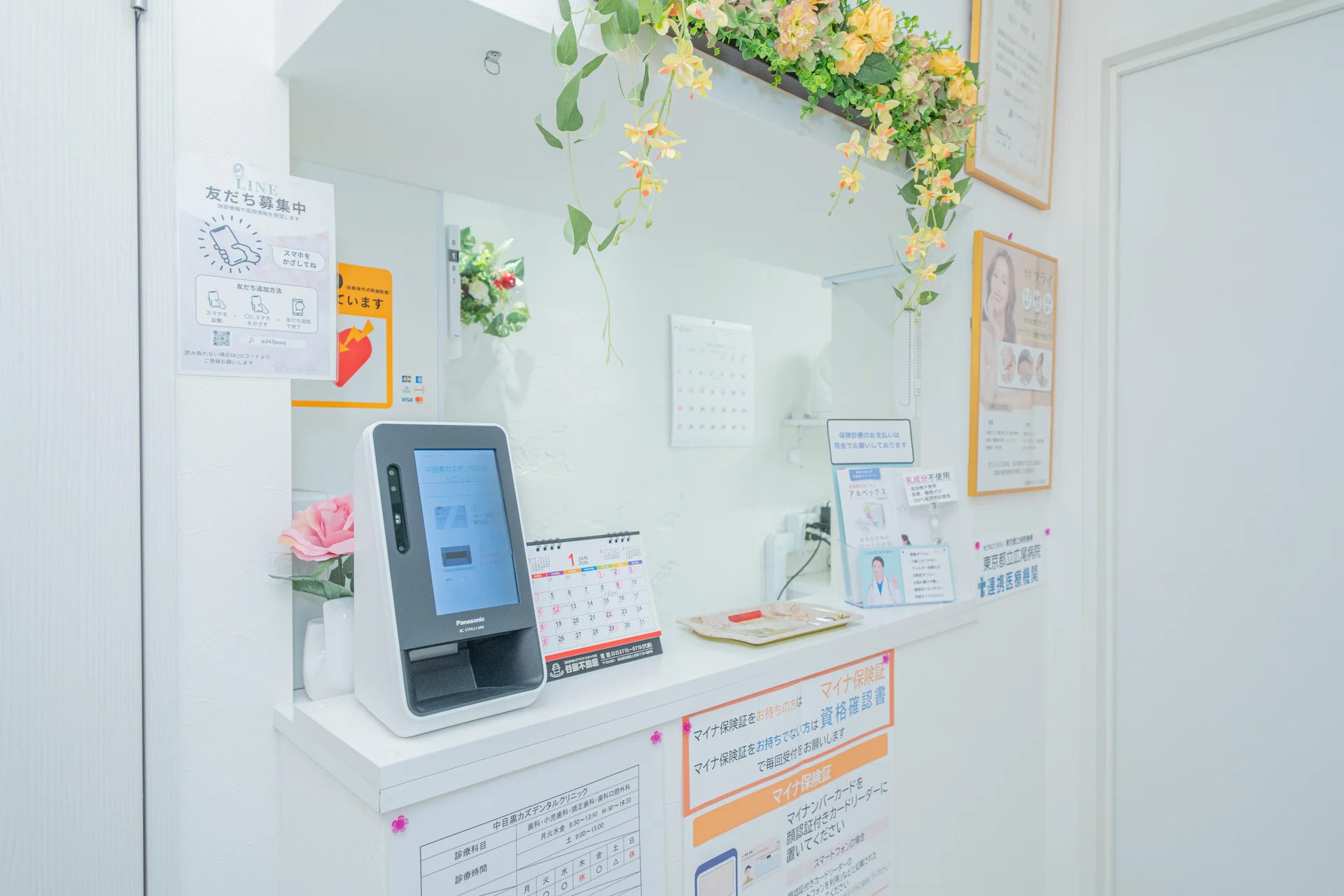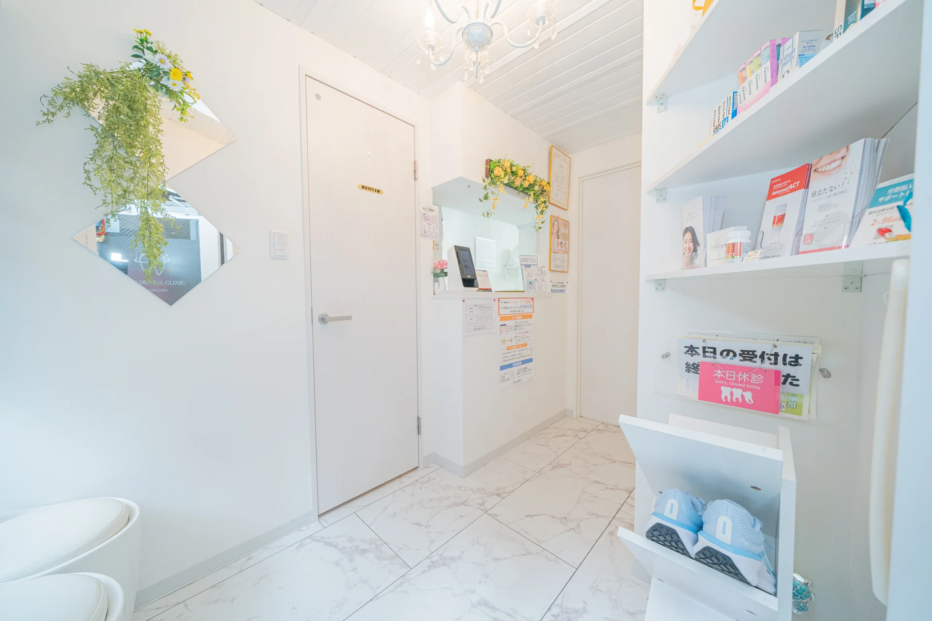 歯科特有の緊張感を感じさせない温かな空間です。受付は専任の衛生士が兼ねているため、お困りごとも気兼ねなく、アットホームな雰囲気で相談いただけます。