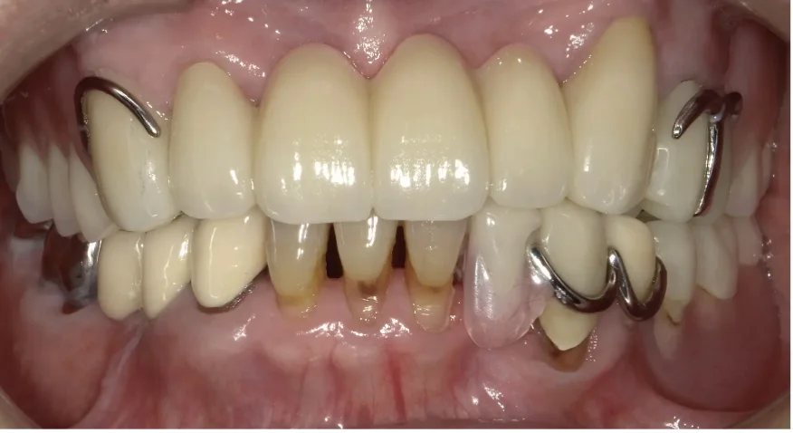 セラミックブリッジと金属床義歯を用いて、見た目と噛みやすさを追求(75歳女性)
