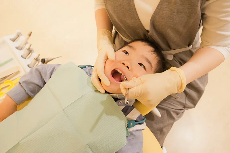 お子様がリラックスできるよう、専用の診療室や受付を完備。優しい声掛けや服装にも工夫を凝らし、苦手意識を安心に変える環境づくりに努めています。