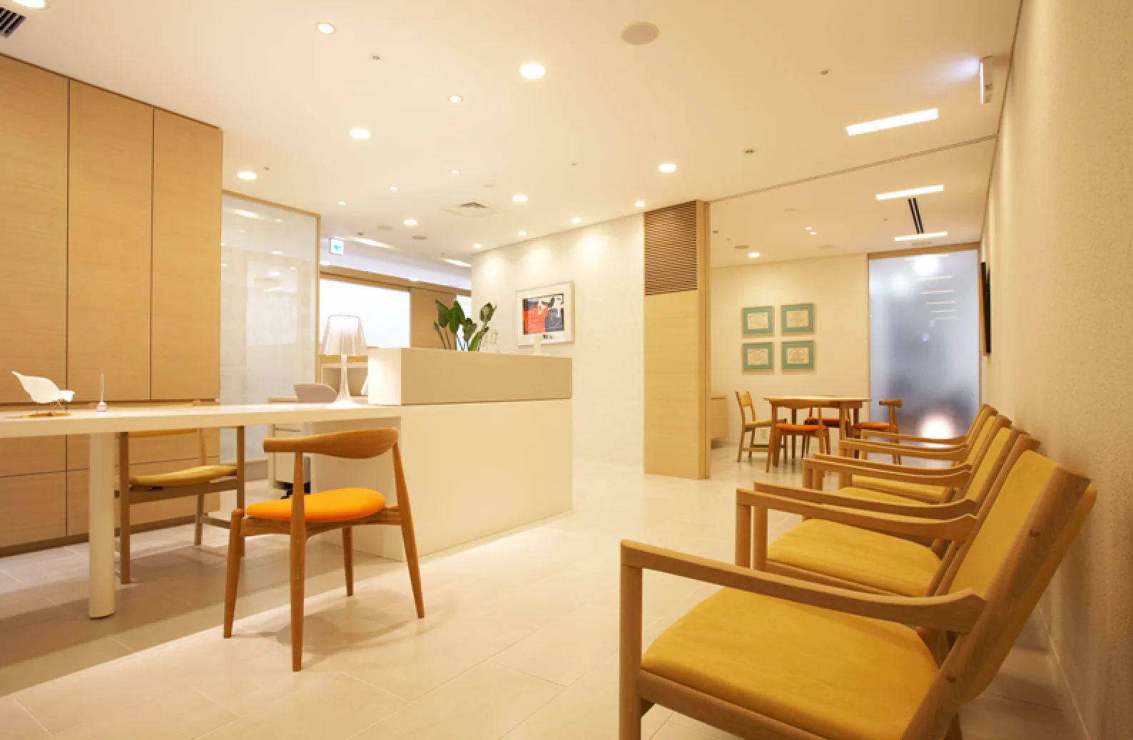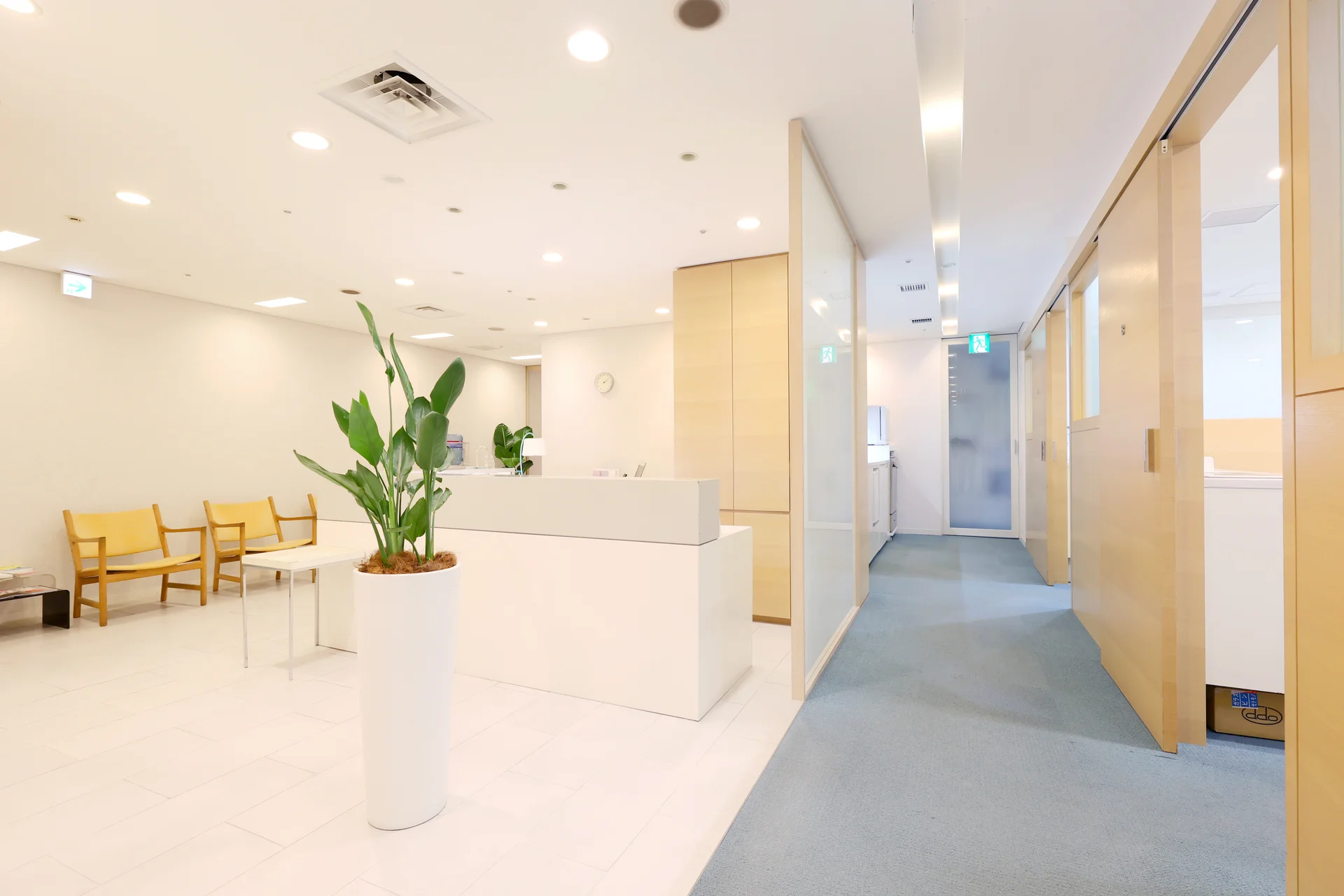 患者さんに少しでもリラックスしていただけるように、明るく清潔感の溢れる空間づくりを心がけております。また院内は広々とした設計となっており、車椅子やベビーカーの方も安心してお入りいただけます。
