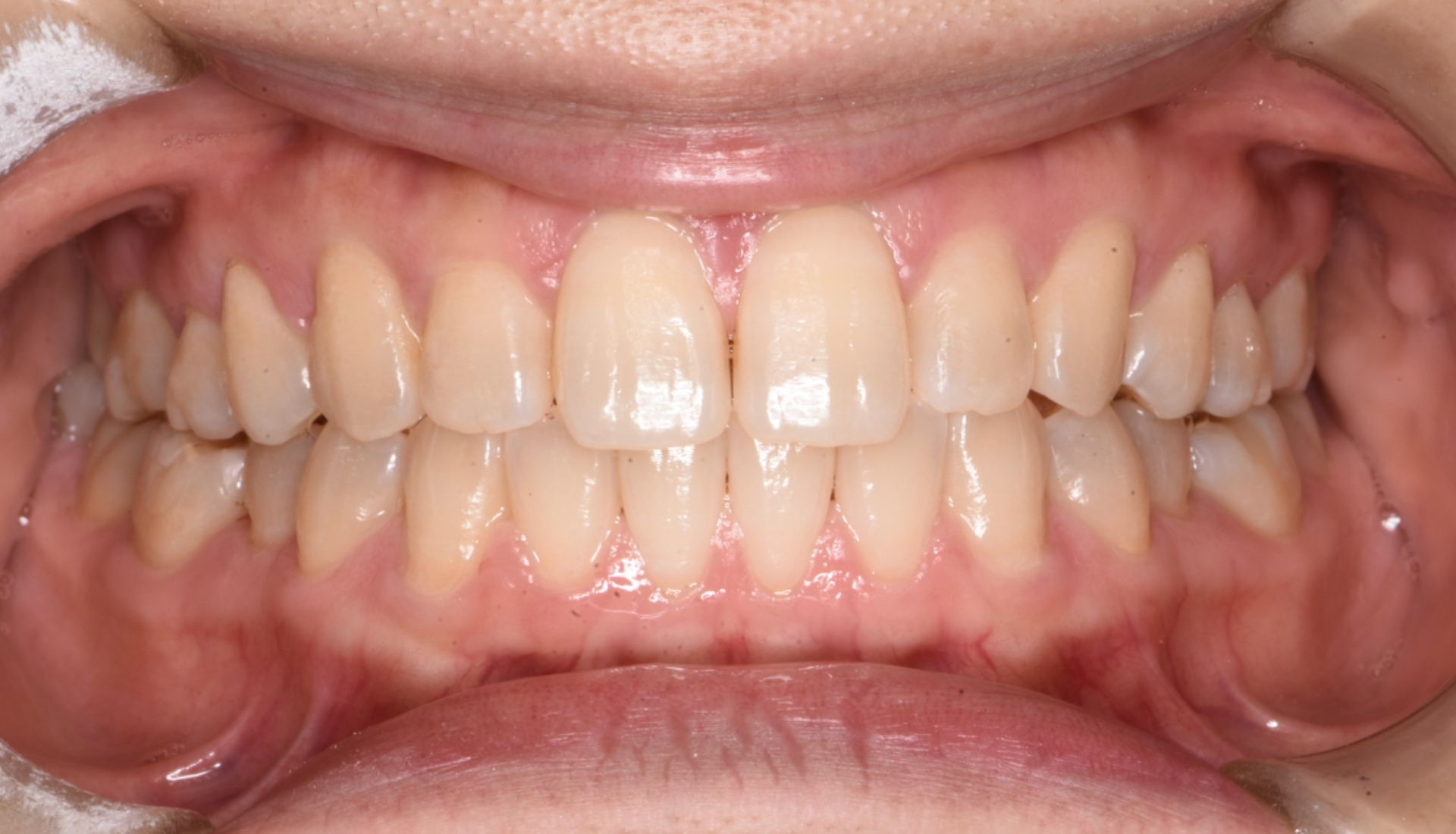 矯正したいと来院全顎アライナー矯正にて治療。 歯列が綺麗になり、クリーニングやホワイトニングにも興味を持っていただくようになり 最終、全顎のクリーニング、オフィスホワイトニング1回、ホームホワイトニング2週間で患者様とてもご満足いただけました。