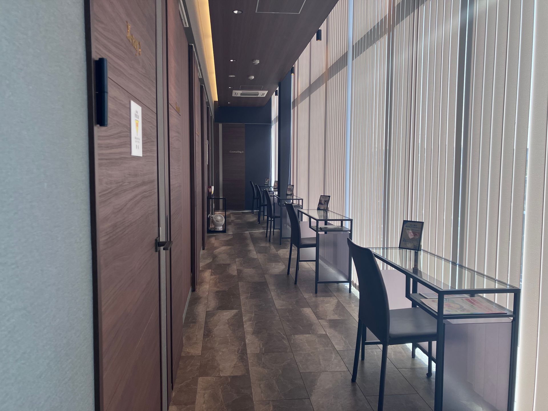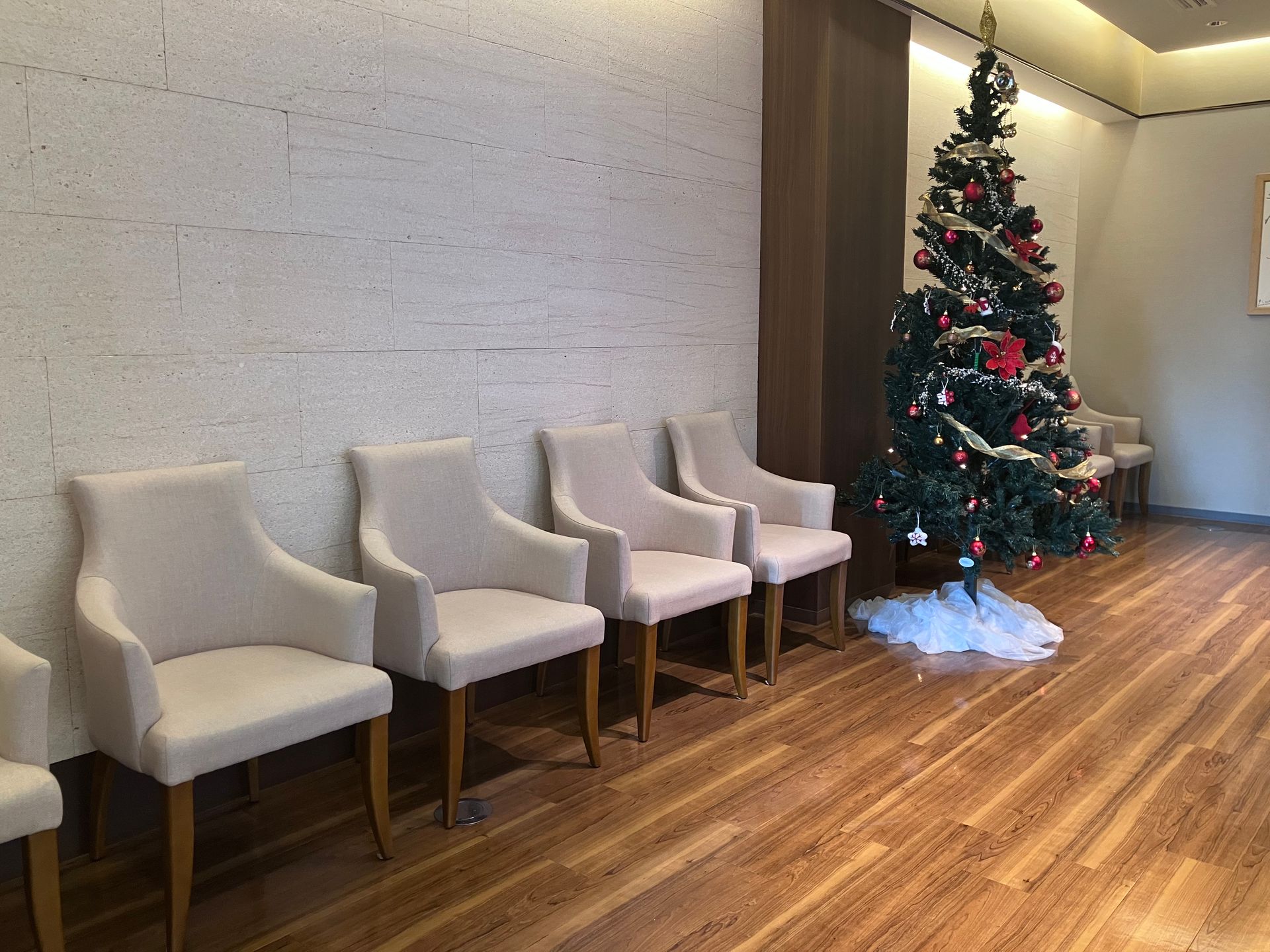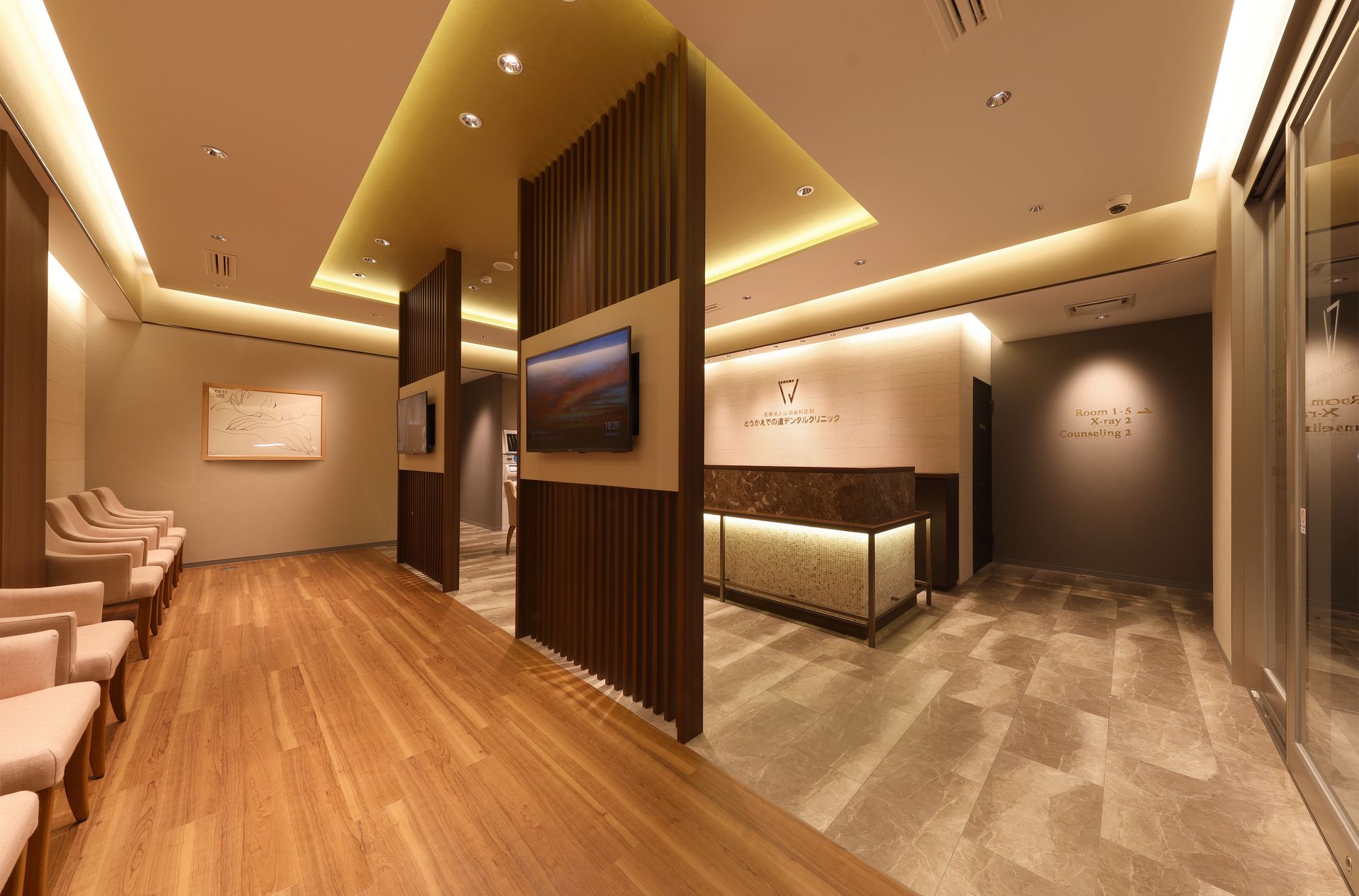 緊張を和らげる、ゆったりとした上質な待合空間。個別の椅子で、ご自宅のようにくつろいでいただけるよう、温かな雰囲気づくりを心がけています。