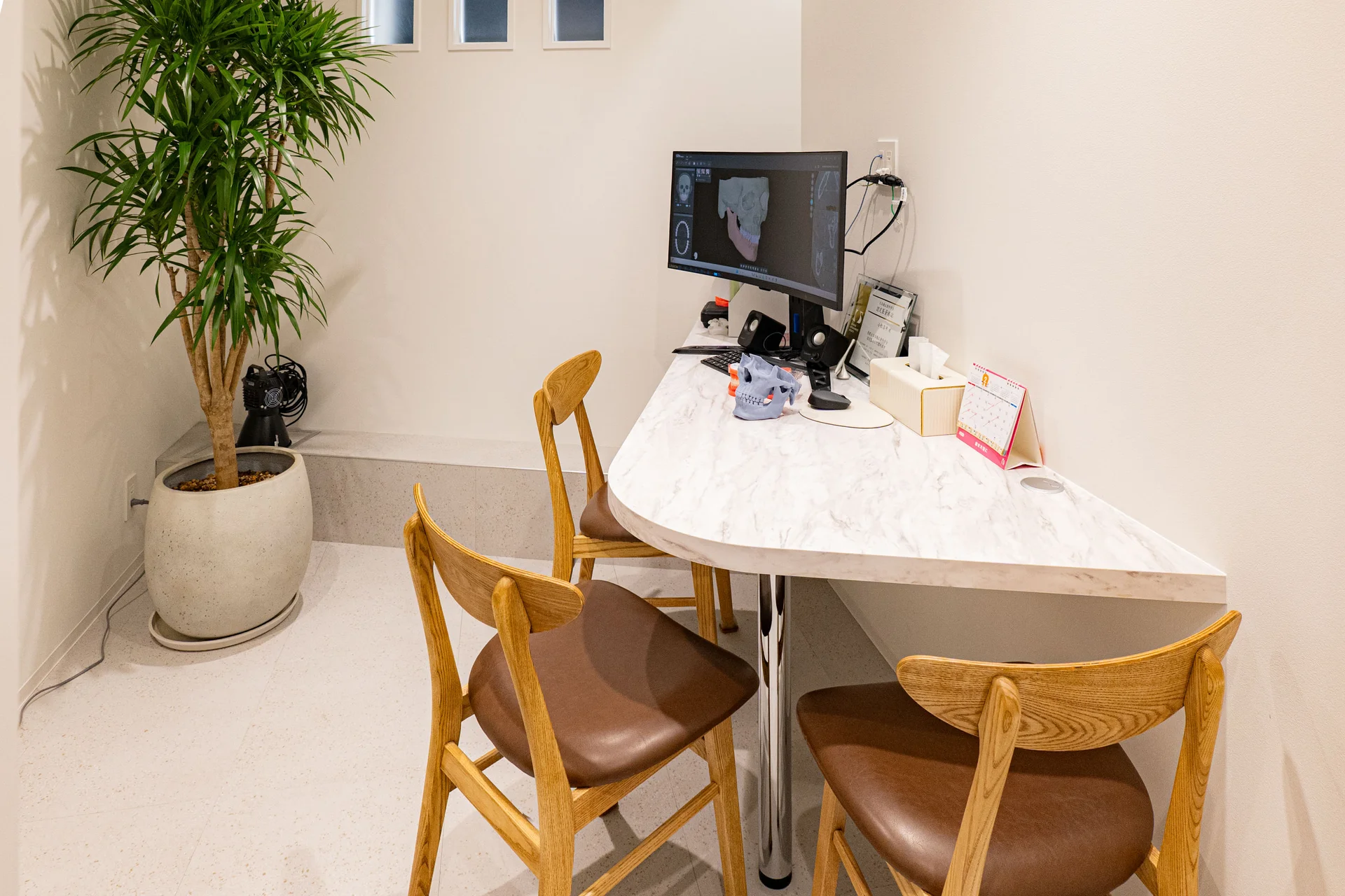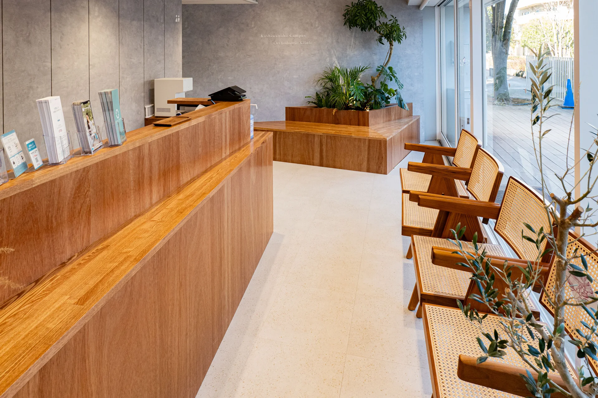 木の温もりあふれる家具と、大きな窓から差し込む光が明るい開放的な空間。通院が楽しみになるような、リラックスできる快適な環境でお迎えします。