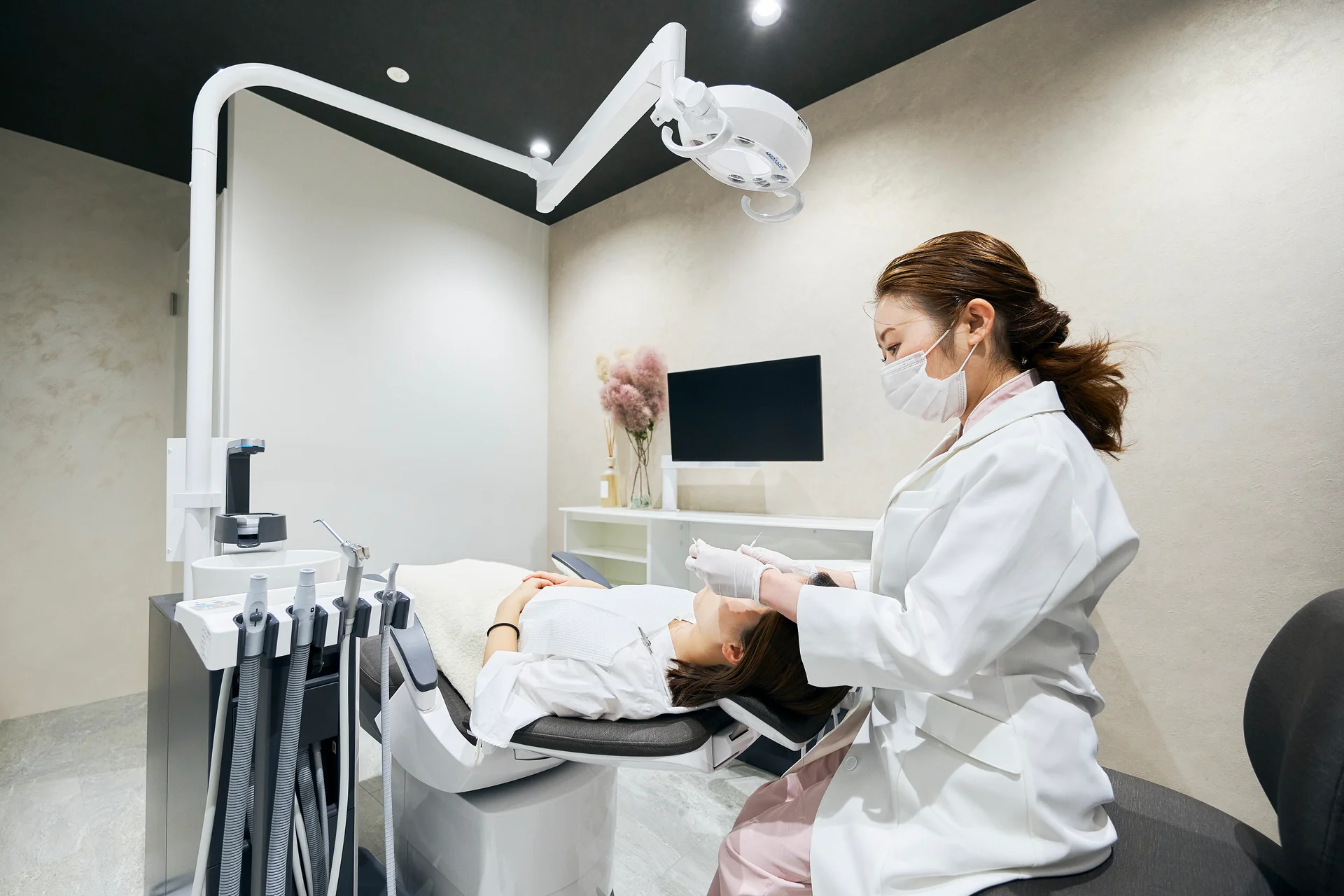 マイクロスコープやCT、肌診断機VISIA等の最新設備を完備。全室完全個室のプライベート空間で、安全性と精度にこだわった高度な治療をリラックスして受けられます。
